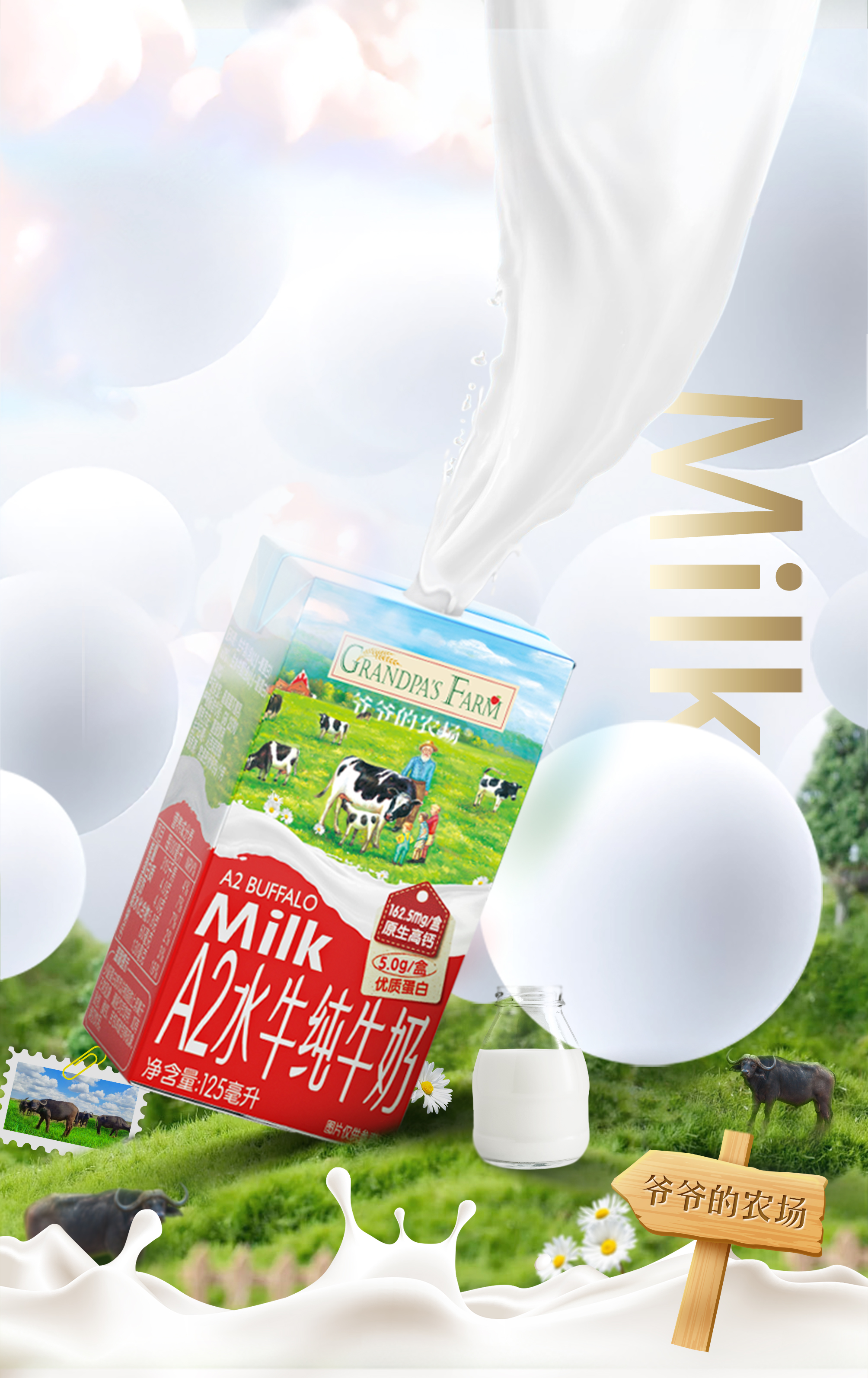 产品深度结合A2型β酪蛋白与水牛乳的优势,满足市场对高品质、易消化牛奶的迫切需求。产品含天然A2β-酪蛋白,其蛋白结构更接近母乳中的酪蛋白,在消化过程中不易产生不适因子,相较于普通牛奶更亲和人体消化系统,能有效减少部分人群饮奶后的肠胃不适症状,适配全家老少日常饮用。水牛乳本身营养丰富,每100mL含4g原生乳蛋白,钙含量达130mg,远超普通牛乳标准,为身体补充充足营养。其脂肪球直径比普通牛乳小1.5μm,不仅易分解吸收,还赋予牛奶香浓丝滑、清甜不腻的独特口感。此外,包装采用125mL小规格铝箔无菌复合膜包装,既精准适配儿童每日饮奶需求,又处于人体最佳吸收容量区间,方便携带且能满足多元场景饮用。从水牛饲料、饮水到挤奶设备每日监测,确保奶源优质纯净;72℃巴氏灭菌与超高温瞬时灭菌结合工艺,兼顾杀菌与营养保留;全程质量溯源,让消费者喝得安心随着消费者对健康、营养乳制品需求的升级。