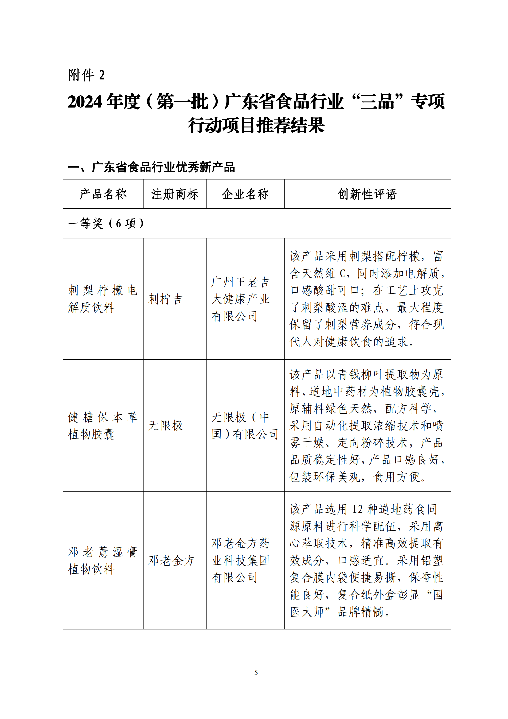 关于2024年度(第一批)广东省食品行业协会科学技术奖获奖名单和广东省食品行业“三品”专项行动项目推荐结果的通告