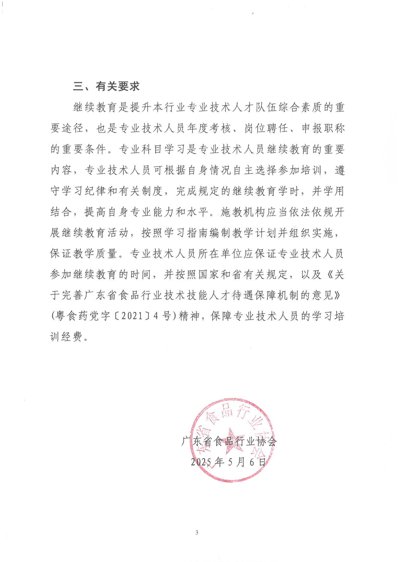关于发布2025年度广东省食品行业专业技术人员继续教育专业科目学习指南的通知