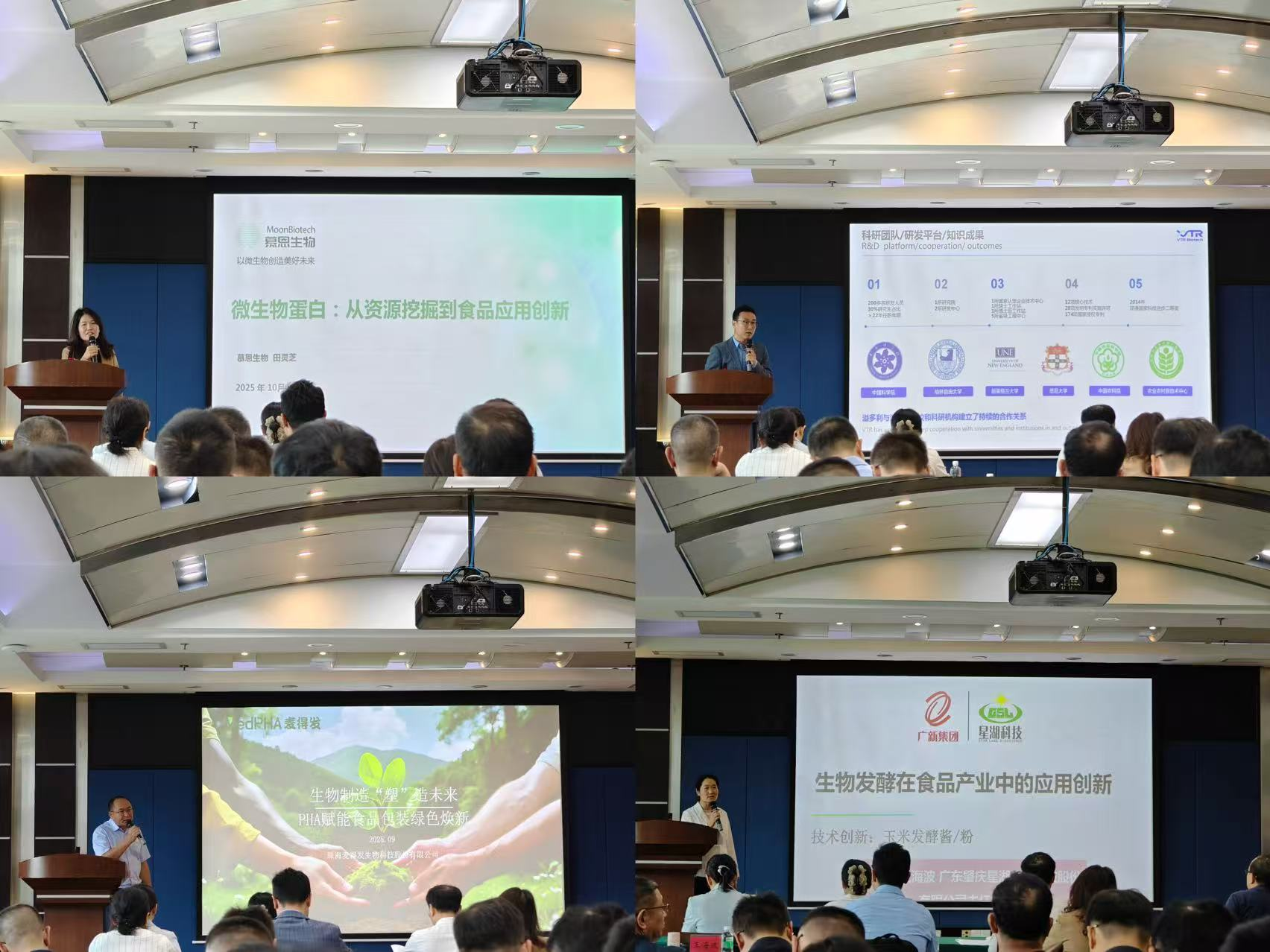 会上同步特设产销对接活动。星湖、天企、南芯、新宝堂等多家食品企业设立展台,集中展示了其应用生物制造赋能食品的相关产品及成果,会后参会企业与首批典型案例企业深入交流,初步达成合作意向。