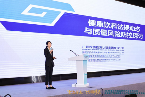 广州检验检测认证集团有限公司广质院院长助理李秀英既是国际标准化组织、食品技术委员会注册专家,也是广东省市场监督管理局食品安全抽检监测承检机构考核评价专家,在食品领域具有多年质检制标经验。她介绍健康饮料产业的发展趋势,梳理与健康饮料相关的产品标准、标签标识、“三新”食品、药食同源等法规标准的新动态,结合监管信息、舆情信息和法规变化等分析健康饮料在质量安全方面可能面临的风险点,从管理体系、供应链控制等角度探讨其防控措施,为企业嘉宾们打了一剂“强力预防针”。