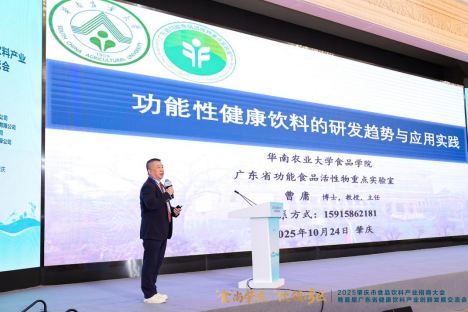 助力一个新兴产业发展,前进方向尤其重要,有效创新的前提是清晰规划。曹庸教授以功能性健康饮料为主体出发,从主要类型、功能方向及关键加工技术、中国功能性饮料的发展历程向现场嘉宾详细论述《功能性健康饮料的研发趋势与应用实践》为题的报告。他重点介绍了功能健康饮料中成分的挖掘、提取分离与功能评价等生产核心环节,并分析国内外头部品牌的产品布局及定价区间,探讨市场规模与竞争格局,分享了广东省功能食品活性物重点实验室在功能性多糖方向的研究进展与应用实践,为功能健康饮料产业创新与产品研发提供参考。