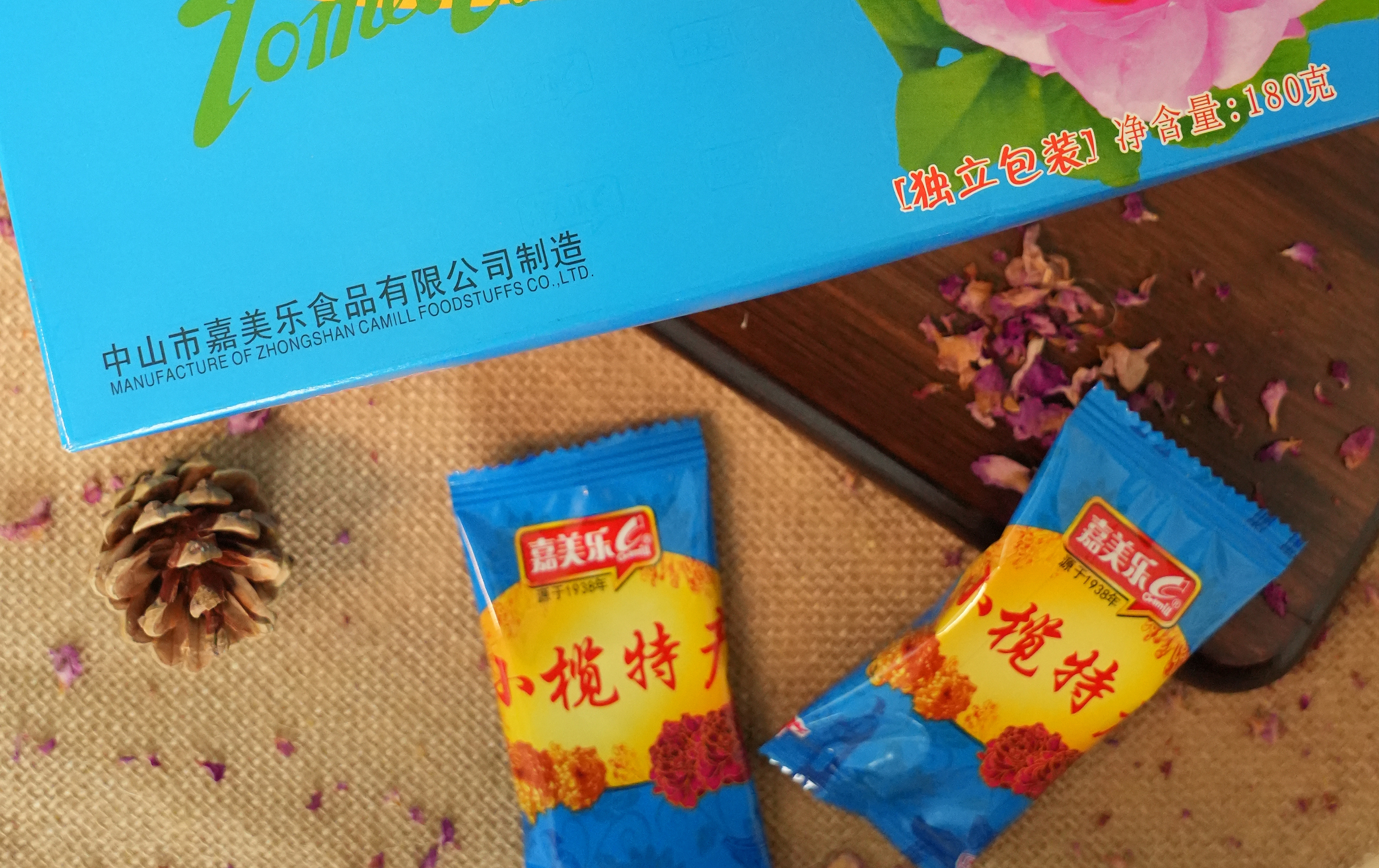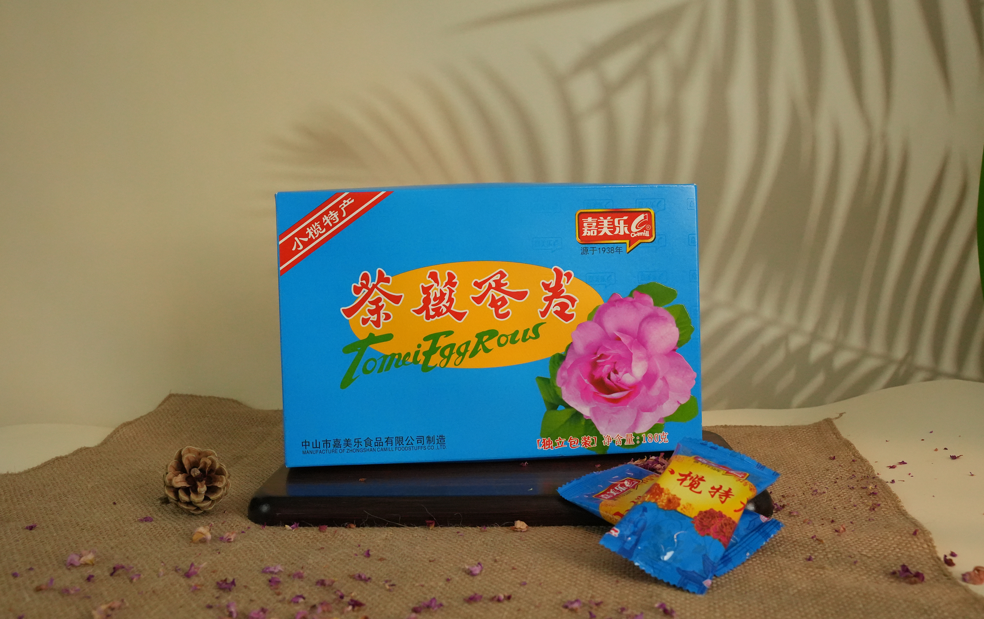 荼薇花,是远古玫瑰花品种之一,在中山已经有三百多年的历史,是菊城的珍稀特产。广东老字号嘉美乐公司将荼薇花融入食品,制作出系列产品:荼薇蛋卷、荼薇花肉、荼薇红豆沙月饼等等,其中荼薇蛋卷曾获得中国名点心荣誉。产品风味独特,花香四溢,令人回味无穷,是馈赠亲友的佳品。