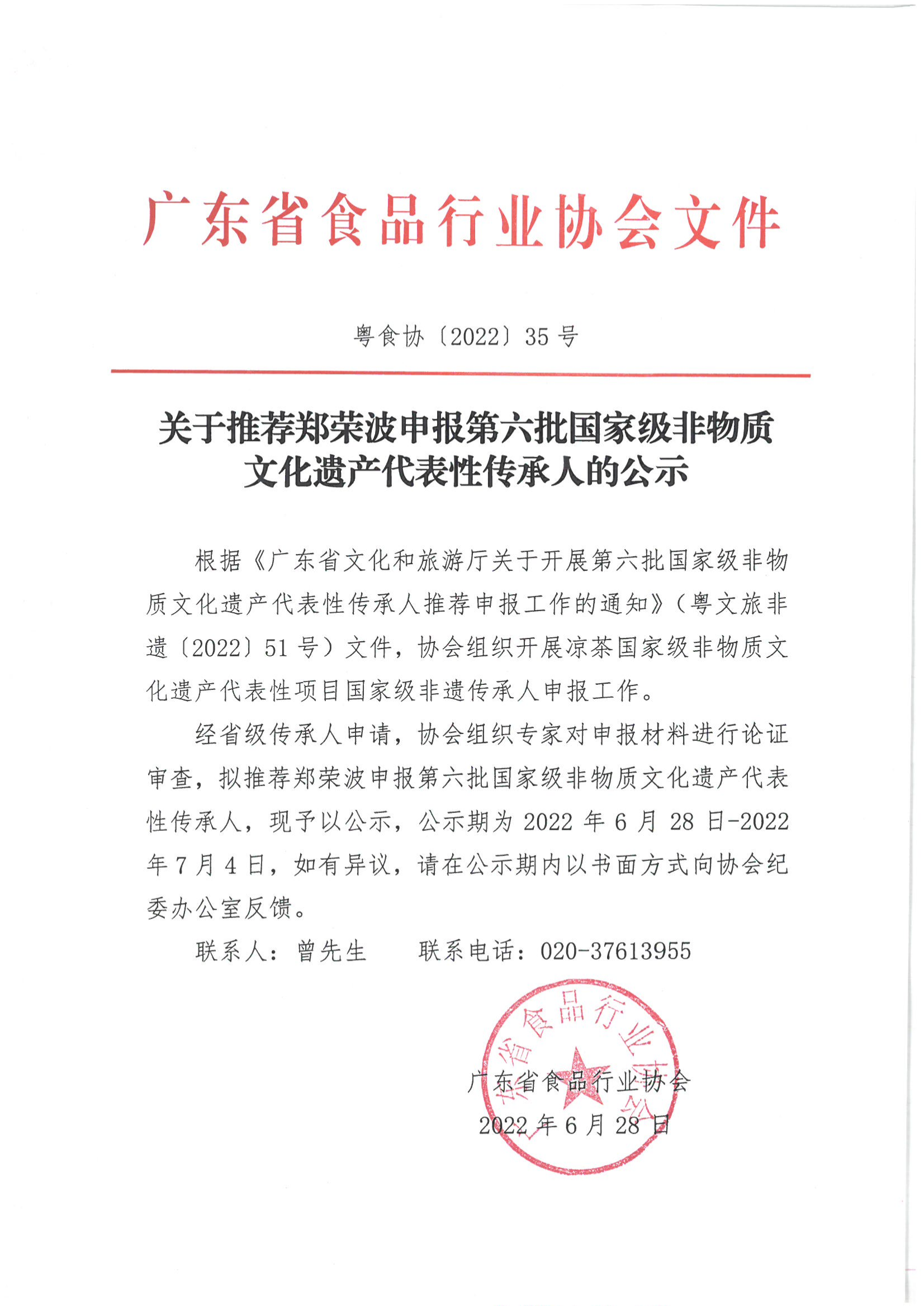 关于推荐郑荣波申报第六批国家级非物质文化遗产代表性传承人的公示